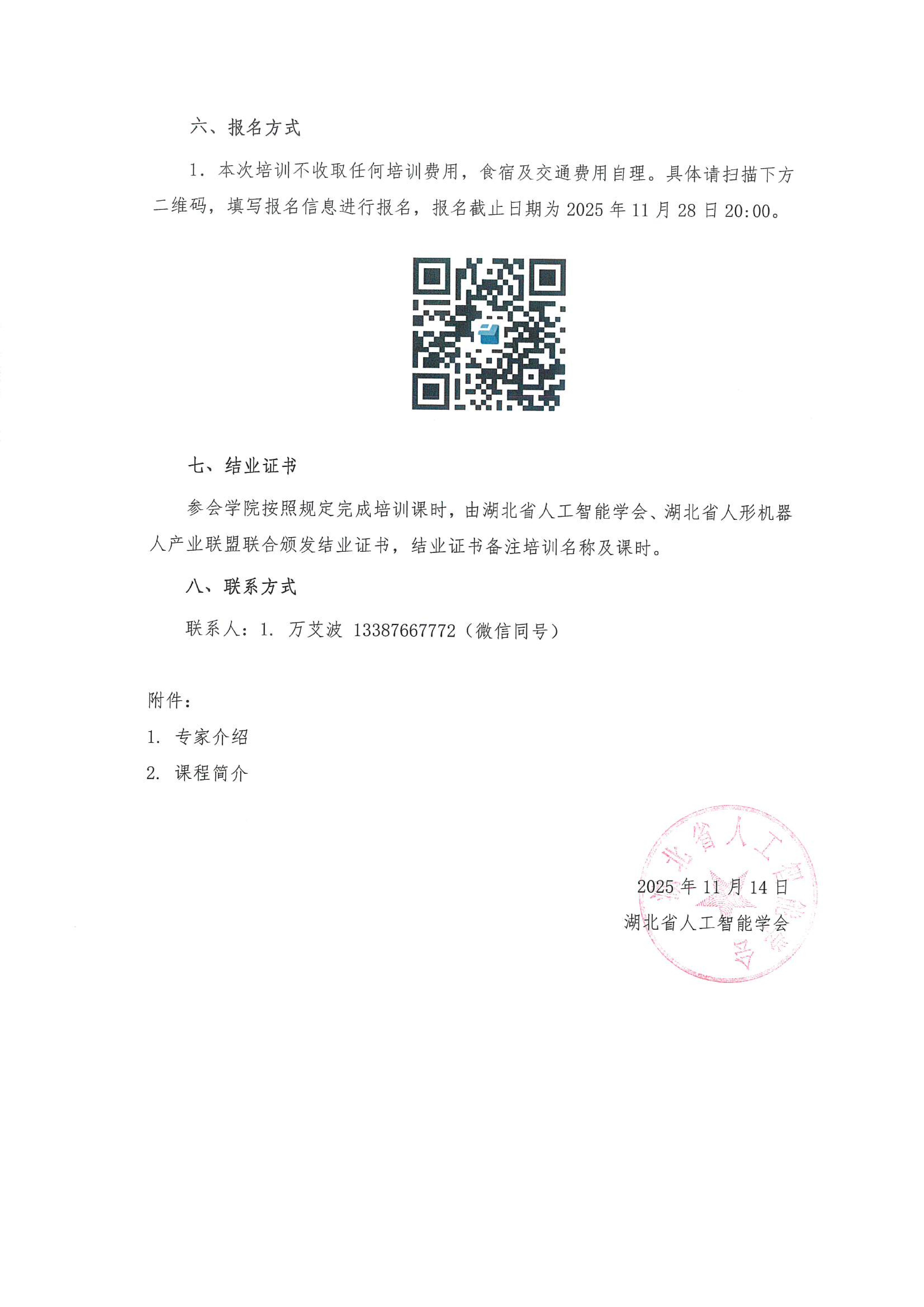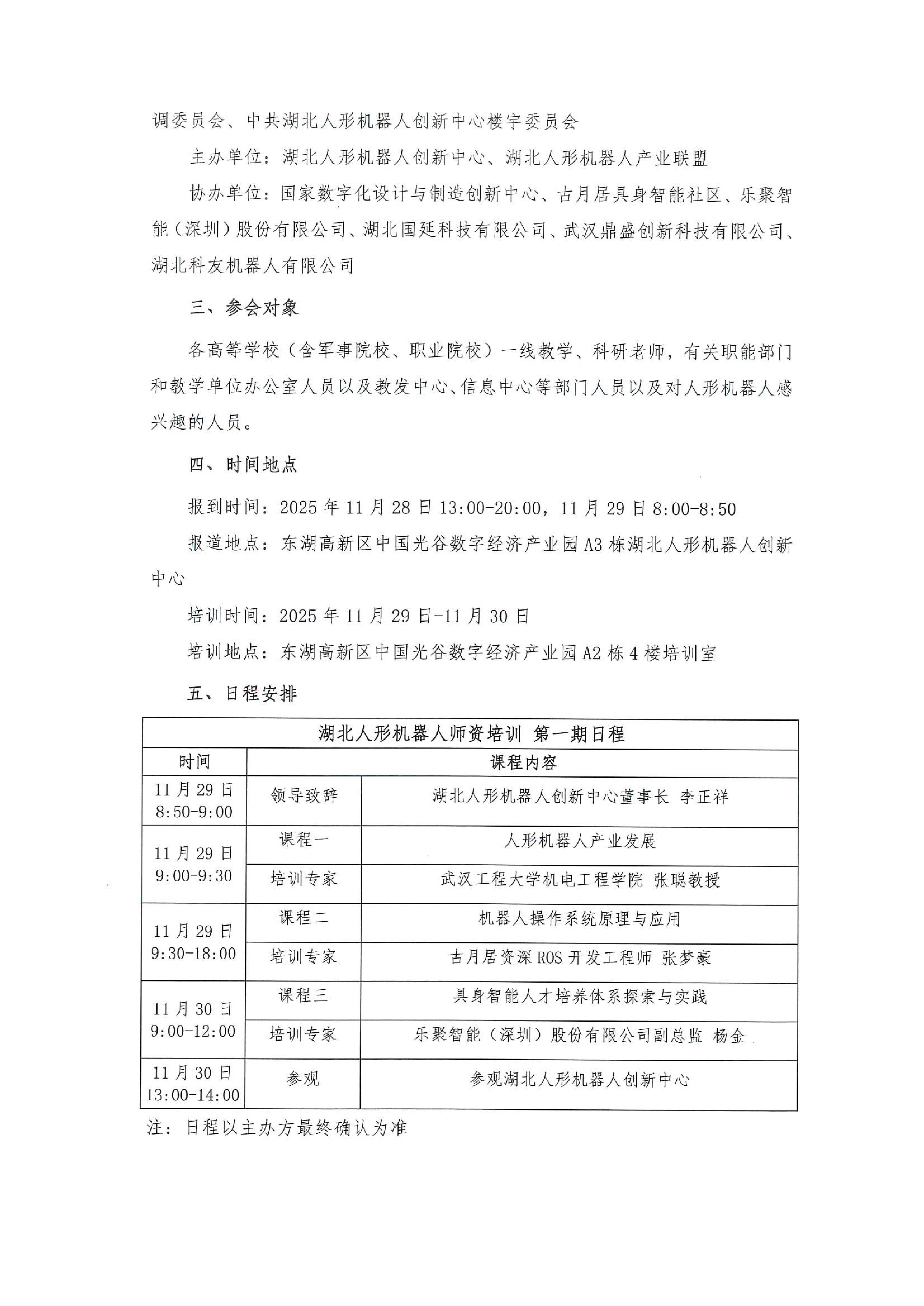 关于举办“湖北人形机器人师资培训(第1期)”的通知